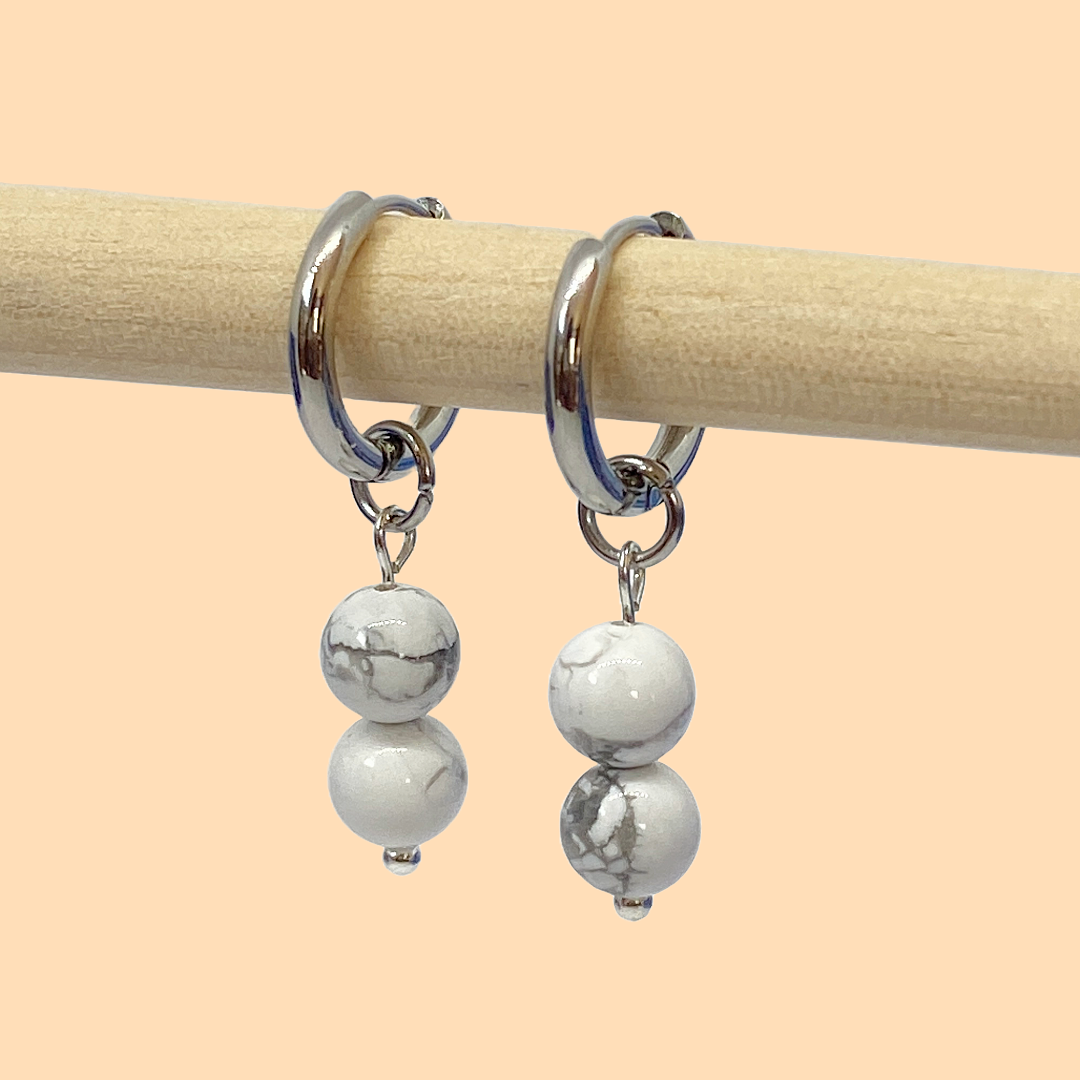 Les boucles d'oreilles "équinoxe" sont composées de 2 perles en pierre naturelles de 6 mm de diamètre, pendant à une créole de 14mm. 🌸