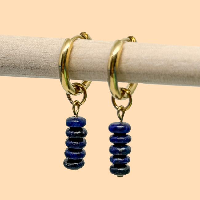 Ces boucles d'oreille sont composées d'une suite de petites perles en pierre naturelles de 4 mm de diamètre, pendant à une créole de 14mm. 🌸